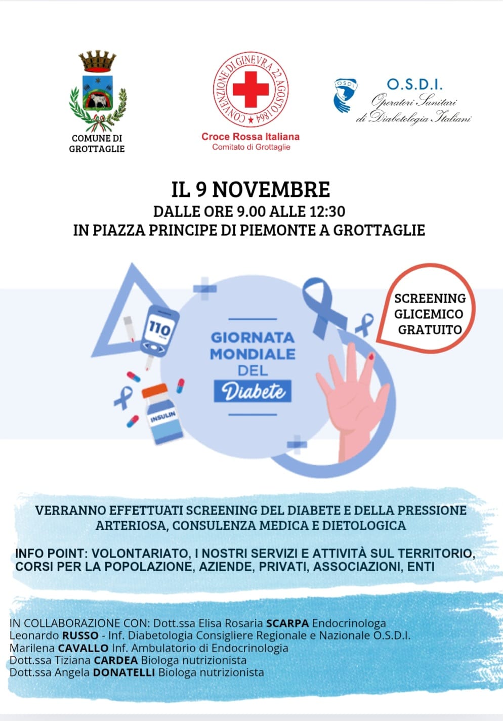 09 Nov 2025 Giornata Mondiale del Diabete 9 Novembre 2025 orario 9:00-12:30 Piazza Principe di Piemonte, Grottaglie Scarica Allegato Evento Patrocinato