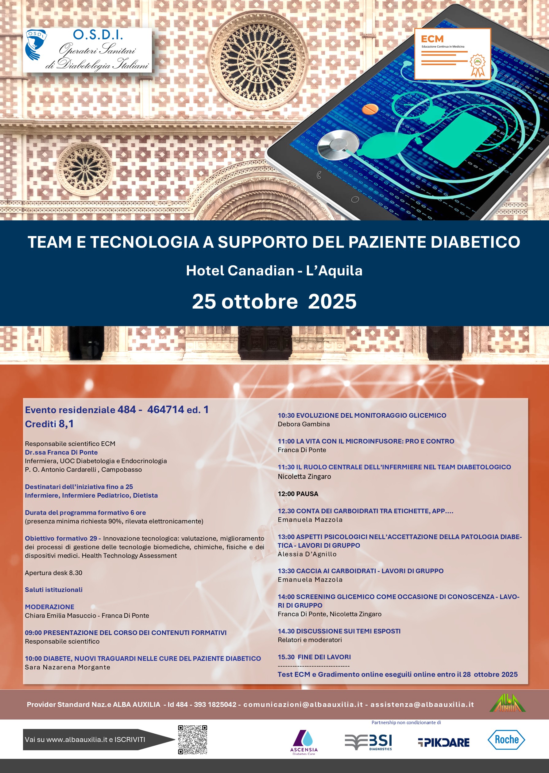 25 Oct 2025 Team e Tecnologia a supporto del paziente diabetico L'Aquila, 25 Ottobre 2025 Scarica Allegato